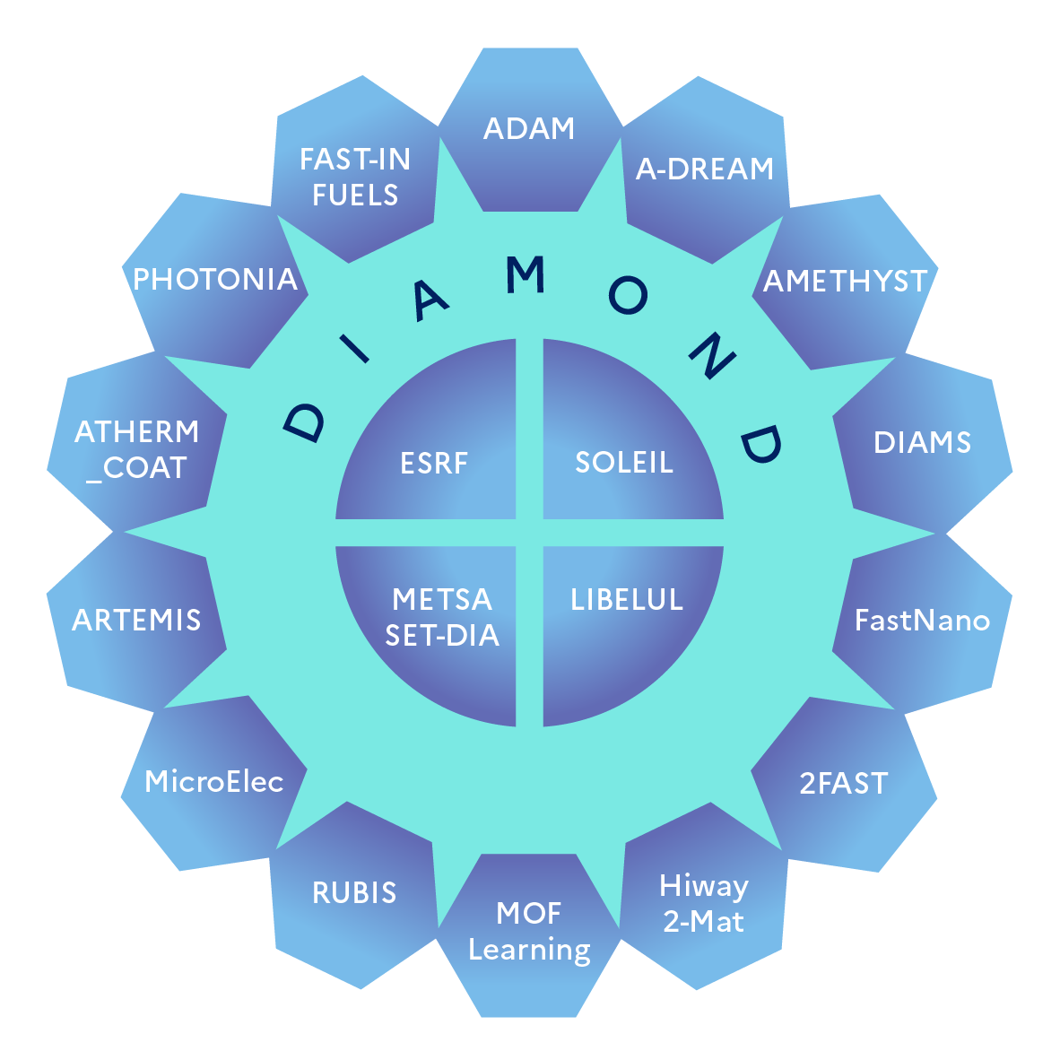 To implement its action, this exploratory PEPR will rely on the deployment of four platforms distributed across the territory (the DIADEM DISCOVERY HUB), combining in an integrated manner modeling, digital simulation, methodologies associated with AI, synthesis technologies/ high-throughput screening and characterization. 19 “demonstrator” projects aim firstly to set up this unique network of platforms, then to demonstrate its ability to accelerate the discovery of innovative materials.